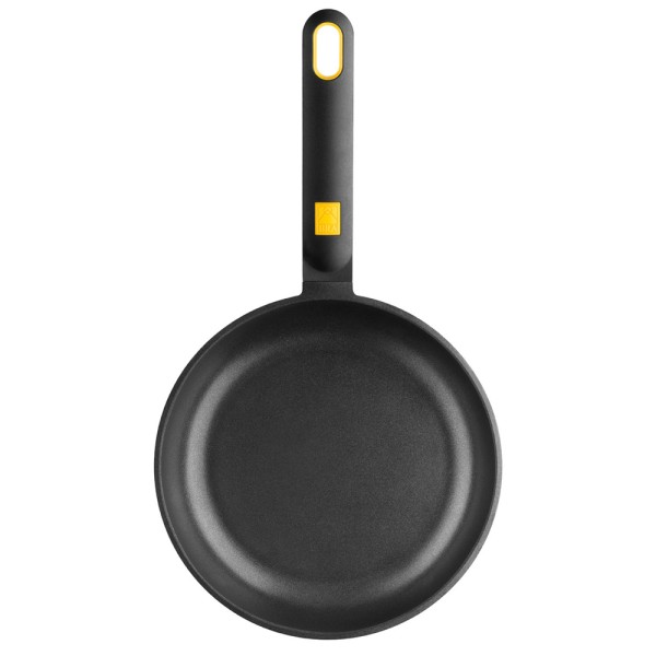 Cuenta con una superficie ultra resistente y su mango de baquelita permite un agarre seguro y cómodo. Dispone de insert de silicona en color amarillo y de un orificio en el extremo del mango con el perfil del mismo color, para poderla colgar.