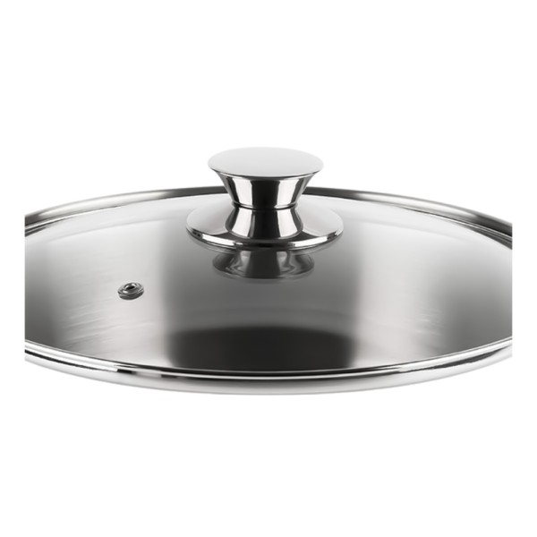 Tapa de cristal con válvula de seguridad. Pomo inoxidable.