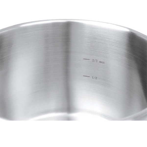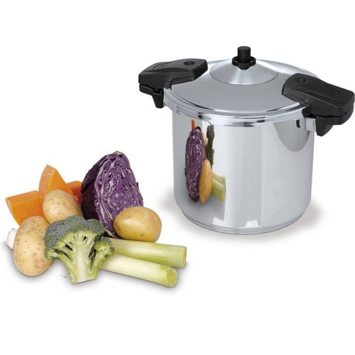 La olla súper rápida modelo OSR con 4 dispositivos de seguridad y válvula de presión estanca cocina en un tercio menos de tiempo que otras ollas convencionales.