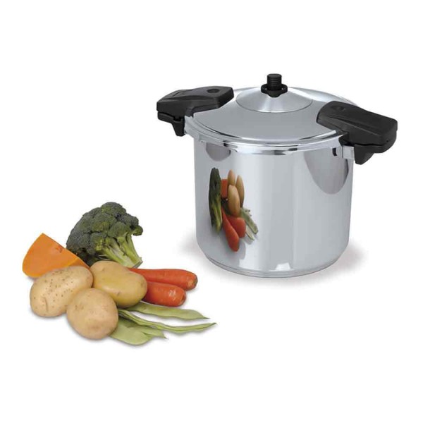 La olla súper rápida modelo OSR con 4 dispositivos de seguridad y válvula de presión estanca cocina en un tercio menos de tiempo que otras ollas convencionales.