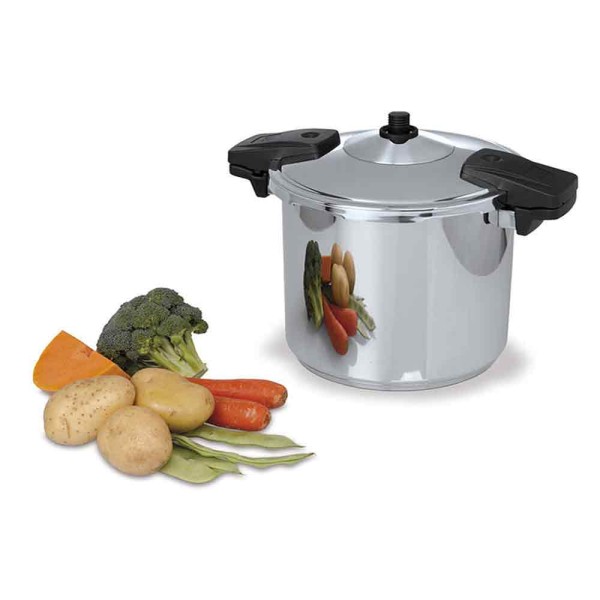 La olla súper rápida modelo OSR con 4 dispositivos de seguridad y válvula de presión estanca cocina en un tercio menos de tiempo que otras ollas convencionales.